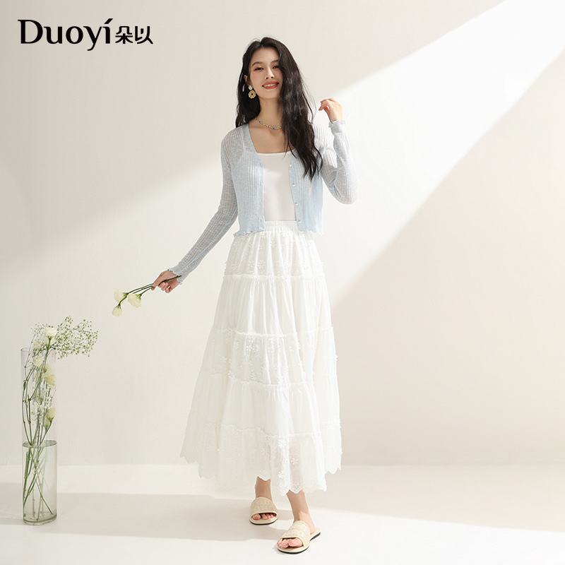 朵以2025夏季新款甜美温柔立体花朵白色半身裙A字裙初恋感小白裙
