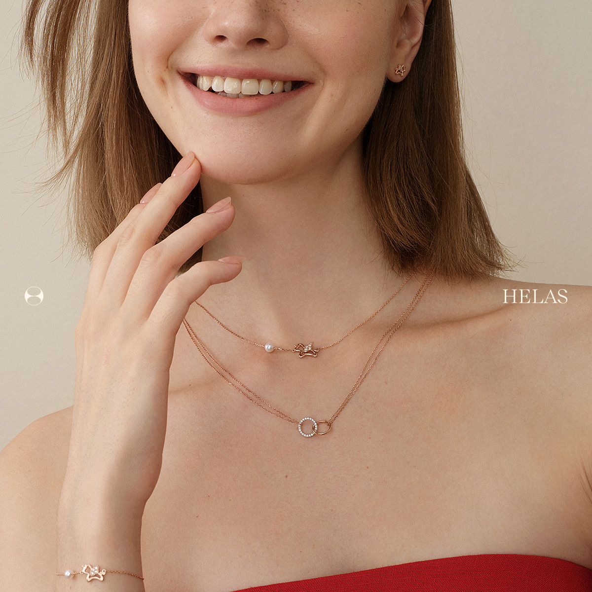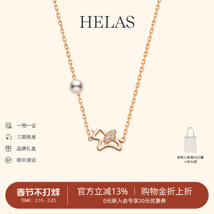 HELAS赫拉Horse幸运系列有核淡水珍珠培育钻石9K金幸运小飞马项链