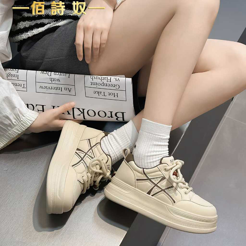 佰诗奴运动休闲鞋女厚底2025年秋季新款韩版系带百搭平底板鞋女潮