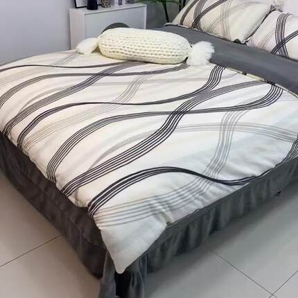 2025新款牛奶绒床上四件套简约黑白波点三件套珊瑚绒床单法兰被套