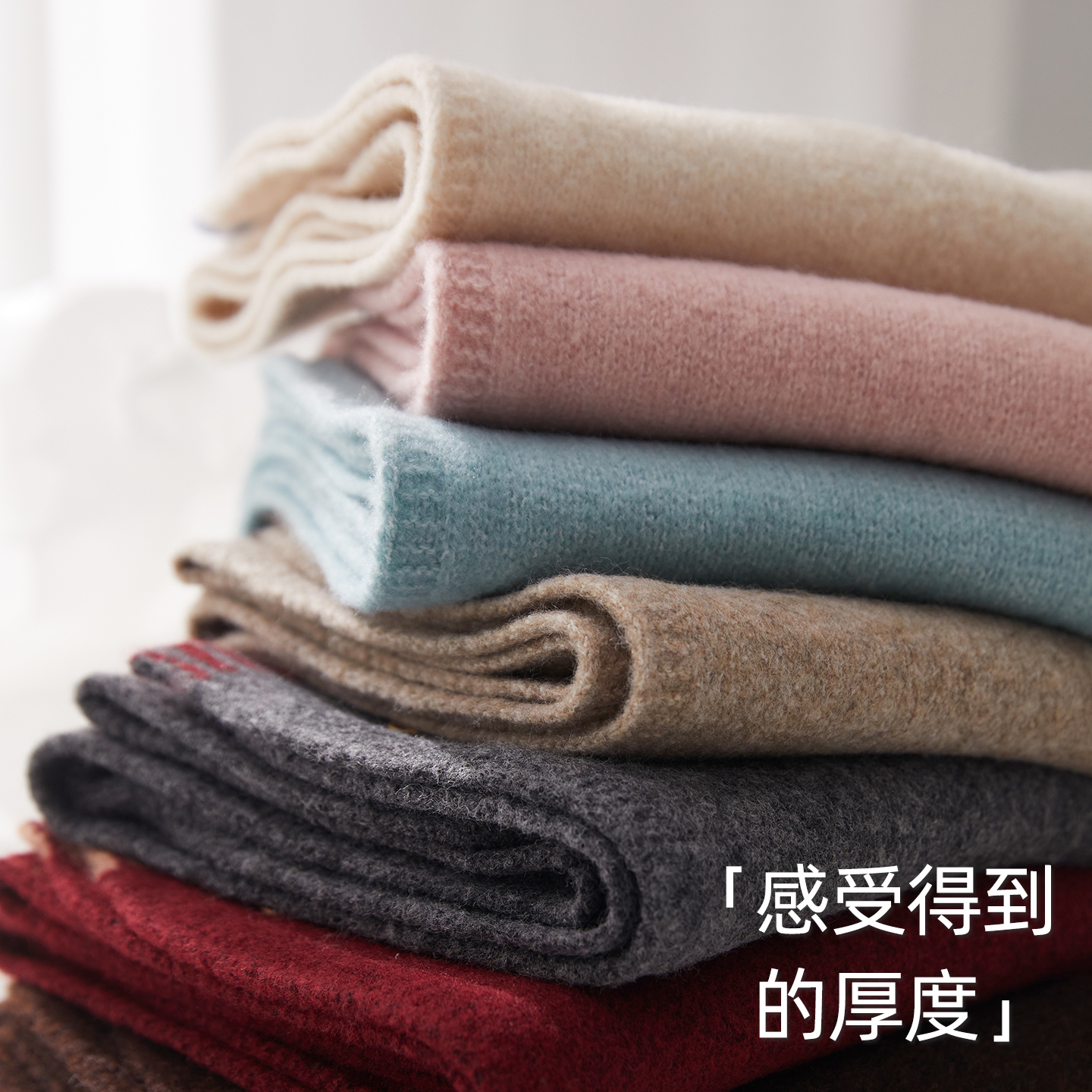 2025新款韩系氛围感撞色含羊毛红色围巾女秋冬季百搭围脖软糯不扎