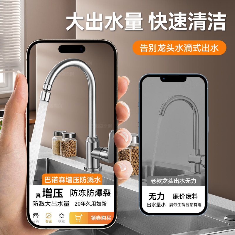 适用于九牧toto包安装304不锈钢厨房水龙头冷热二合一洗菜盆水槽