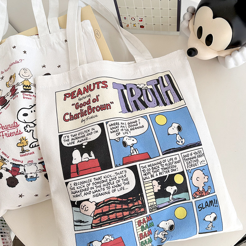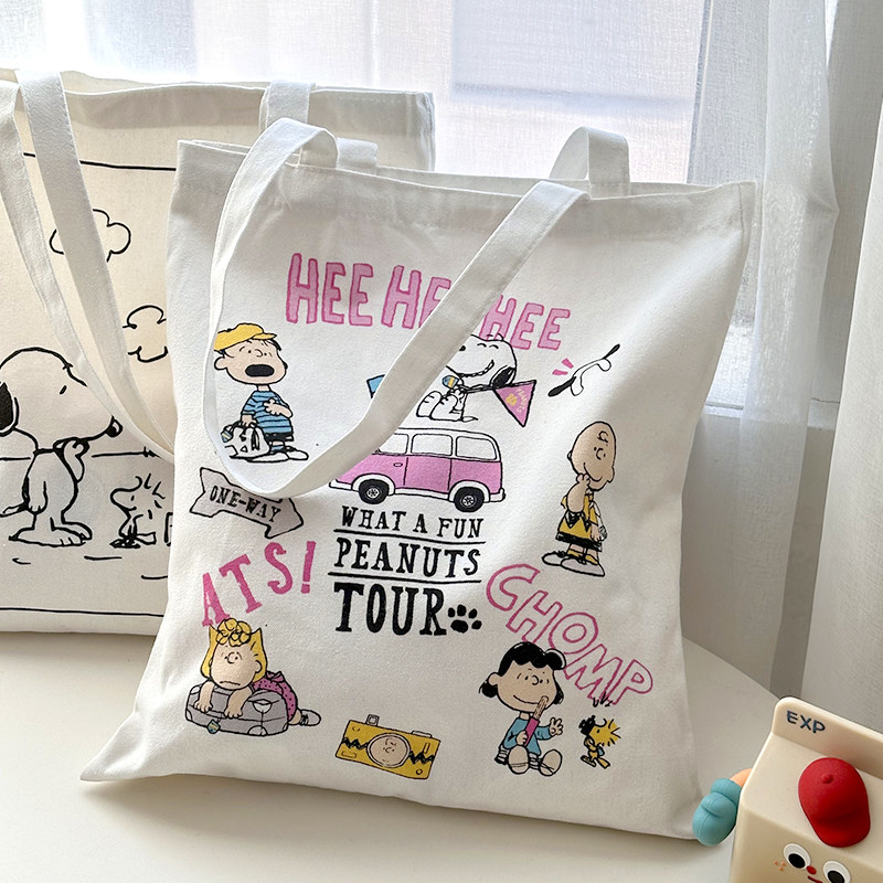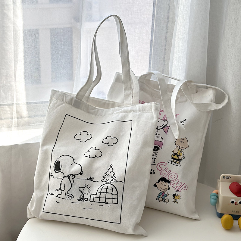 M自制可爱史努比彩色帆布袋卡通购物袋环保袋单肩包韩国大容量ins