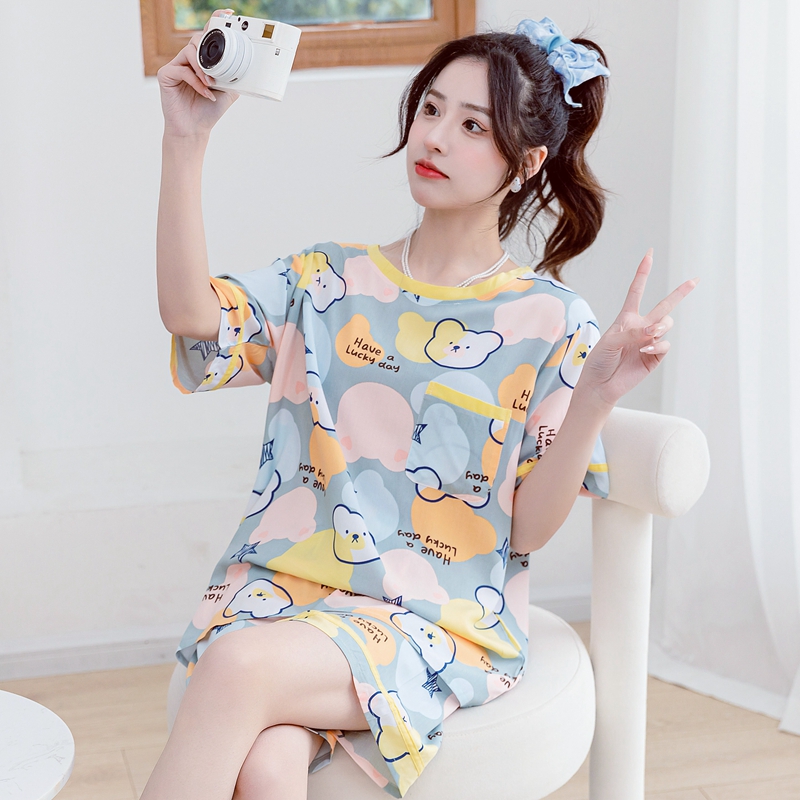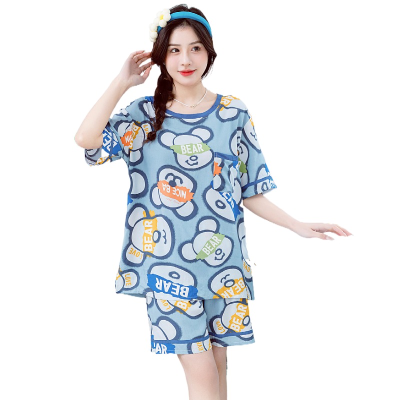棉绸睡衣女夏季薄款短袖中裤套装可爱人造棉甜美凉感绵绸家居服夏