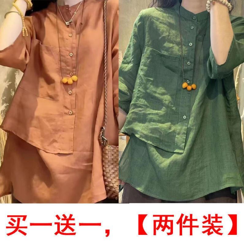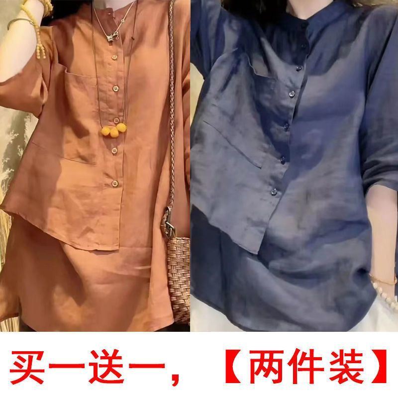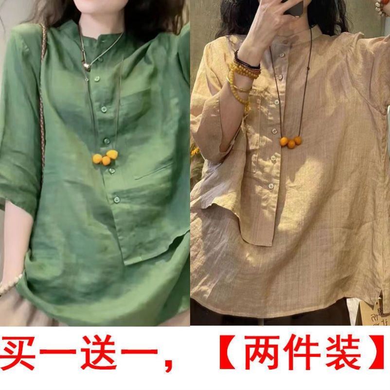 单/两件装 纽扣衬衫女2024夏季设计感小众七分袖宽松遮肚显瘦上衣