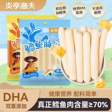 炎亭渔夫85g深海鳕鱼肠儿童即食高钙小零食鱼肉肠营养解馋DHA食品