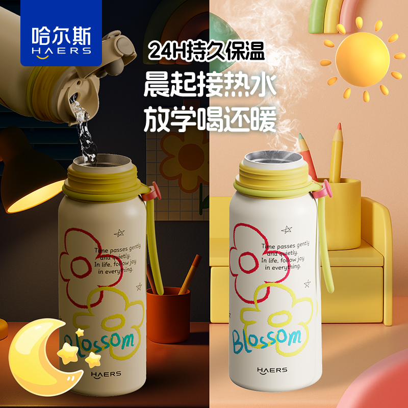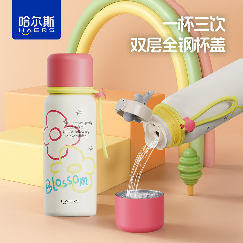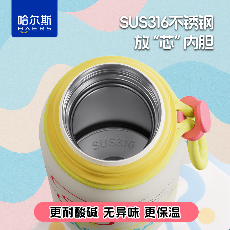 哈尔斯保温杯316不锈钢双饮杯男女学生吸管杯便携运动保暖水杯子