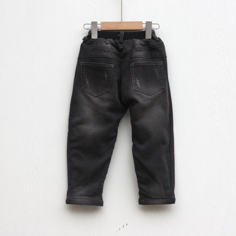S拉系列100-140冬装 品牌折扣童装/儿童加厚休闲牛仔长裤P135黑