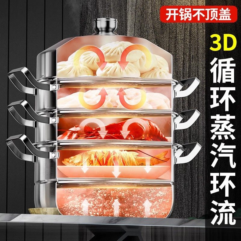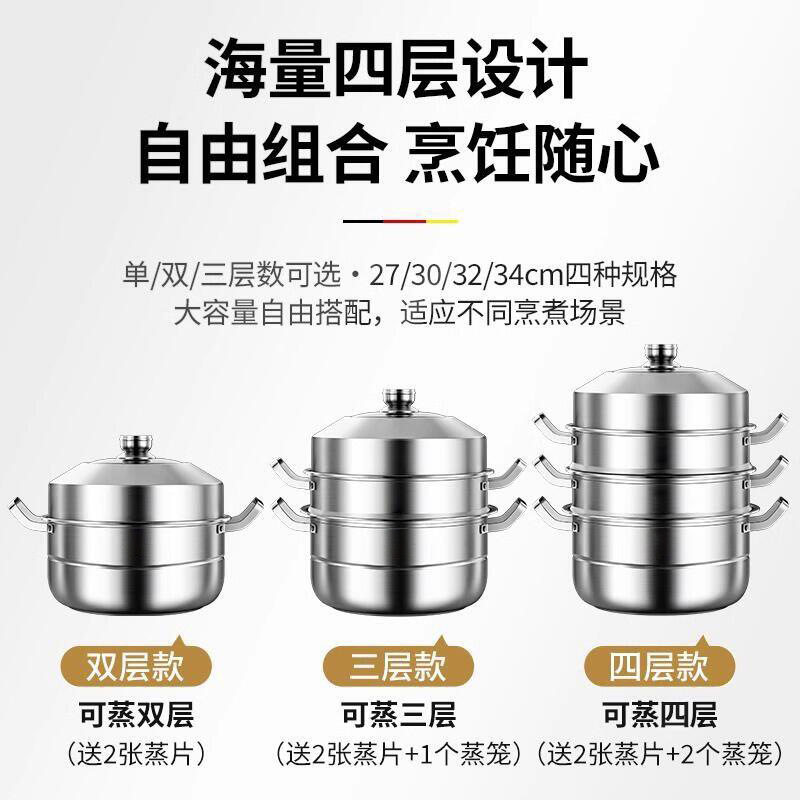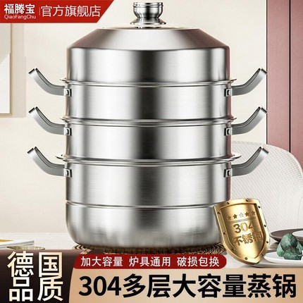 福腾宝官网蒸锅304不锈钢家用加厚蒸笼屉多层蒸馒头大容量蒸煮炖
