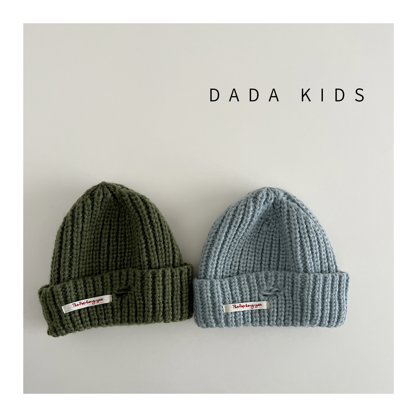 儿童帽子秋冬韩版字母小标洋气针织毛线帽男童女童保暖宝宝套头帽
