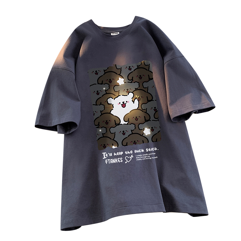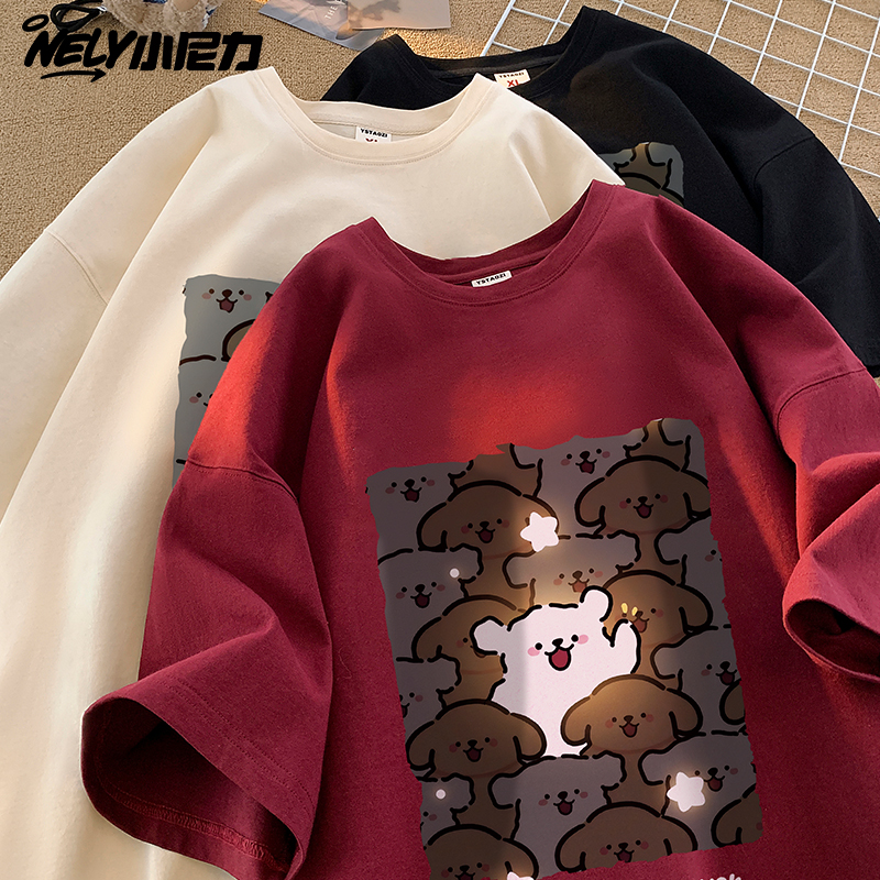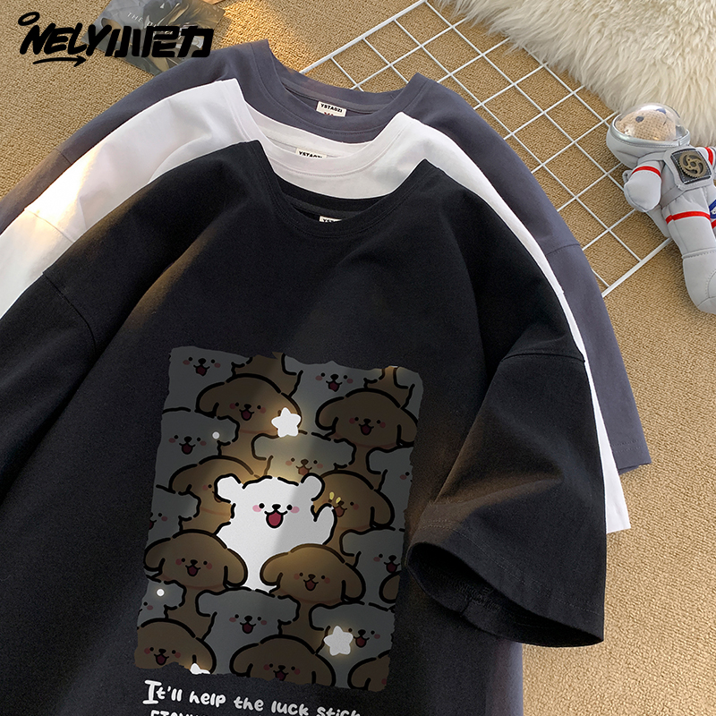 NELY小尼力美式潮流小狗潮牌纯棉短袖t恤男女夏季宽松情侣上衣服