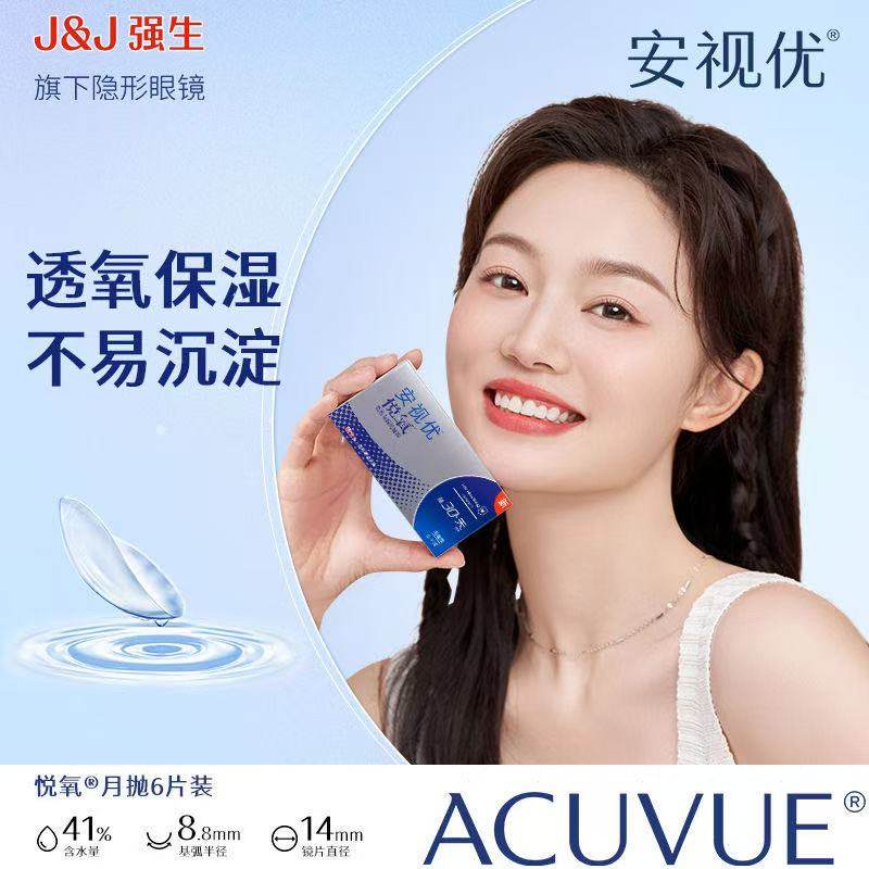 强生安视优悦氧月抛硅水凝胶透明隐形眼镜近视学生官方正品进口
