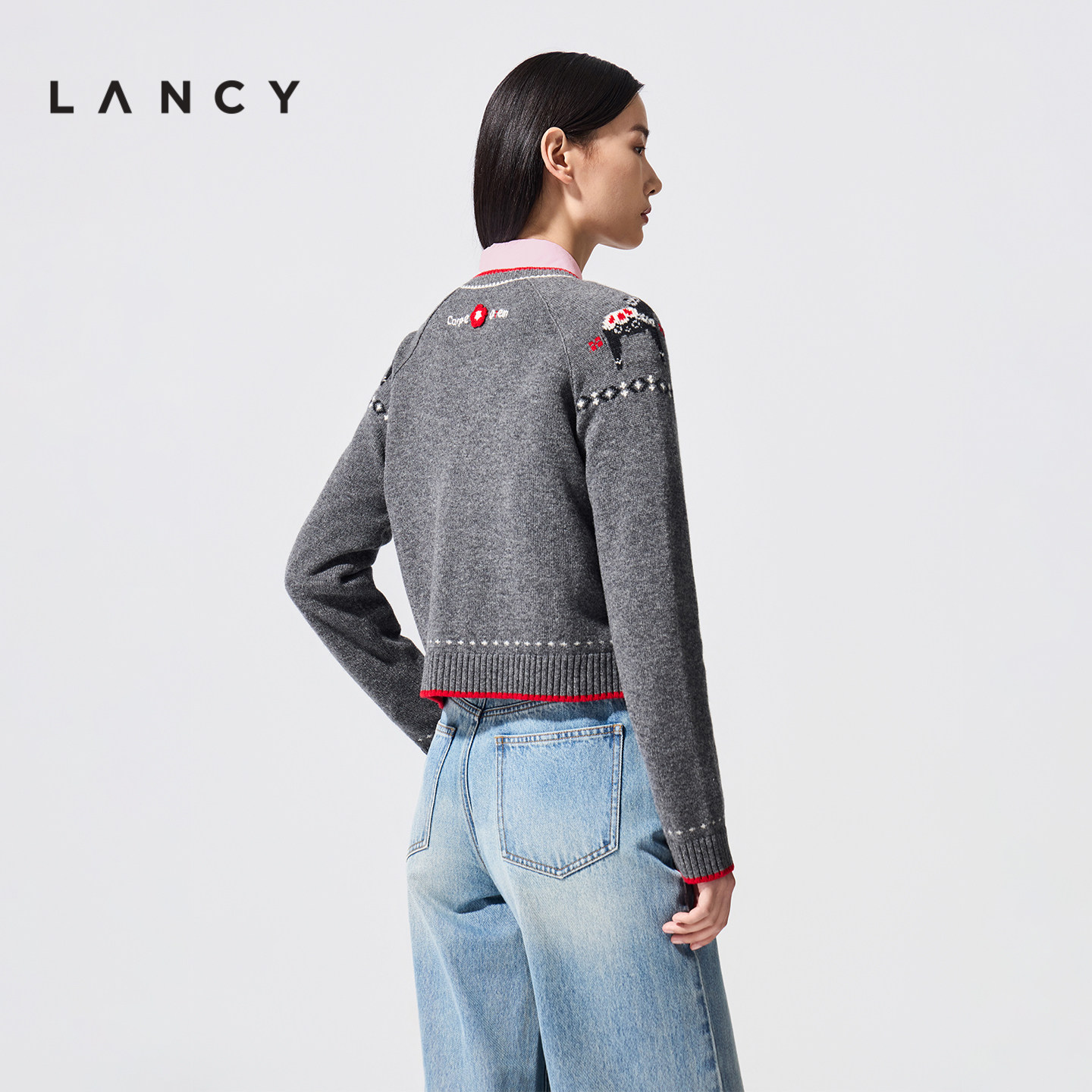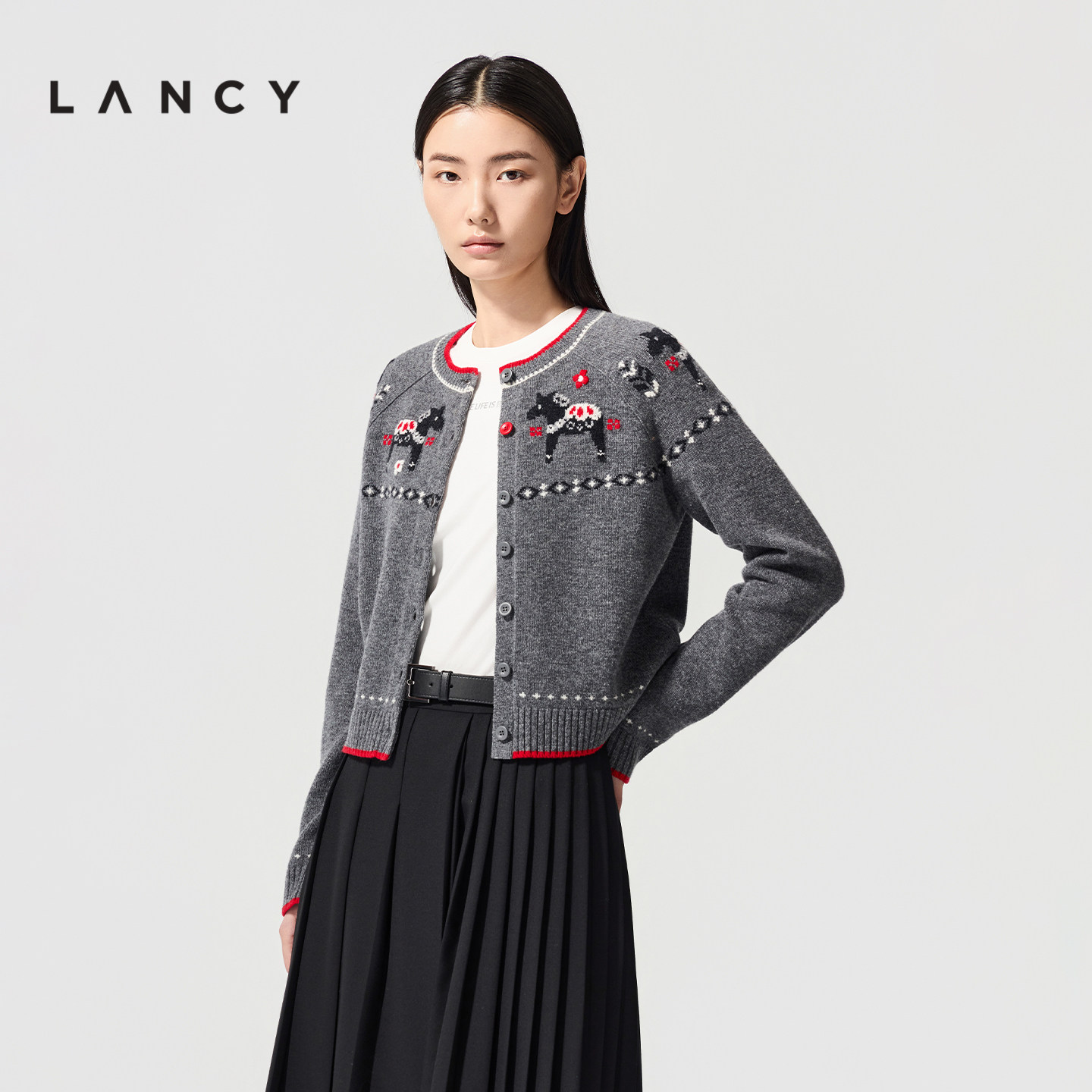 【沈羽洁同款丨马踏春风】LANCY/朗姿2026春季新款纯羊毛针织开衫
