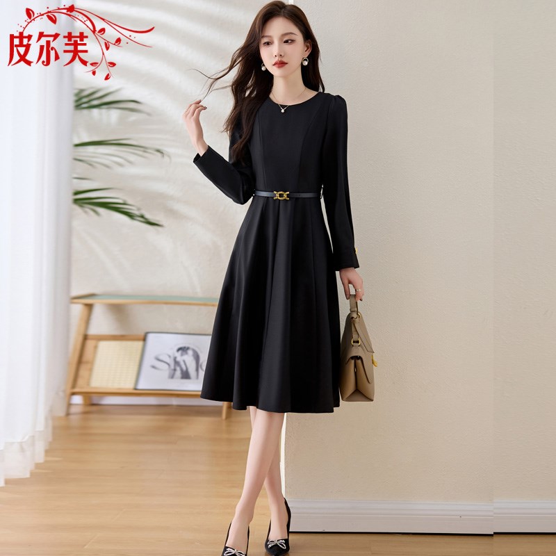 法式长袖连衣裙女士2024春秋季新款高级感气质收腰显瘦中长款裙子