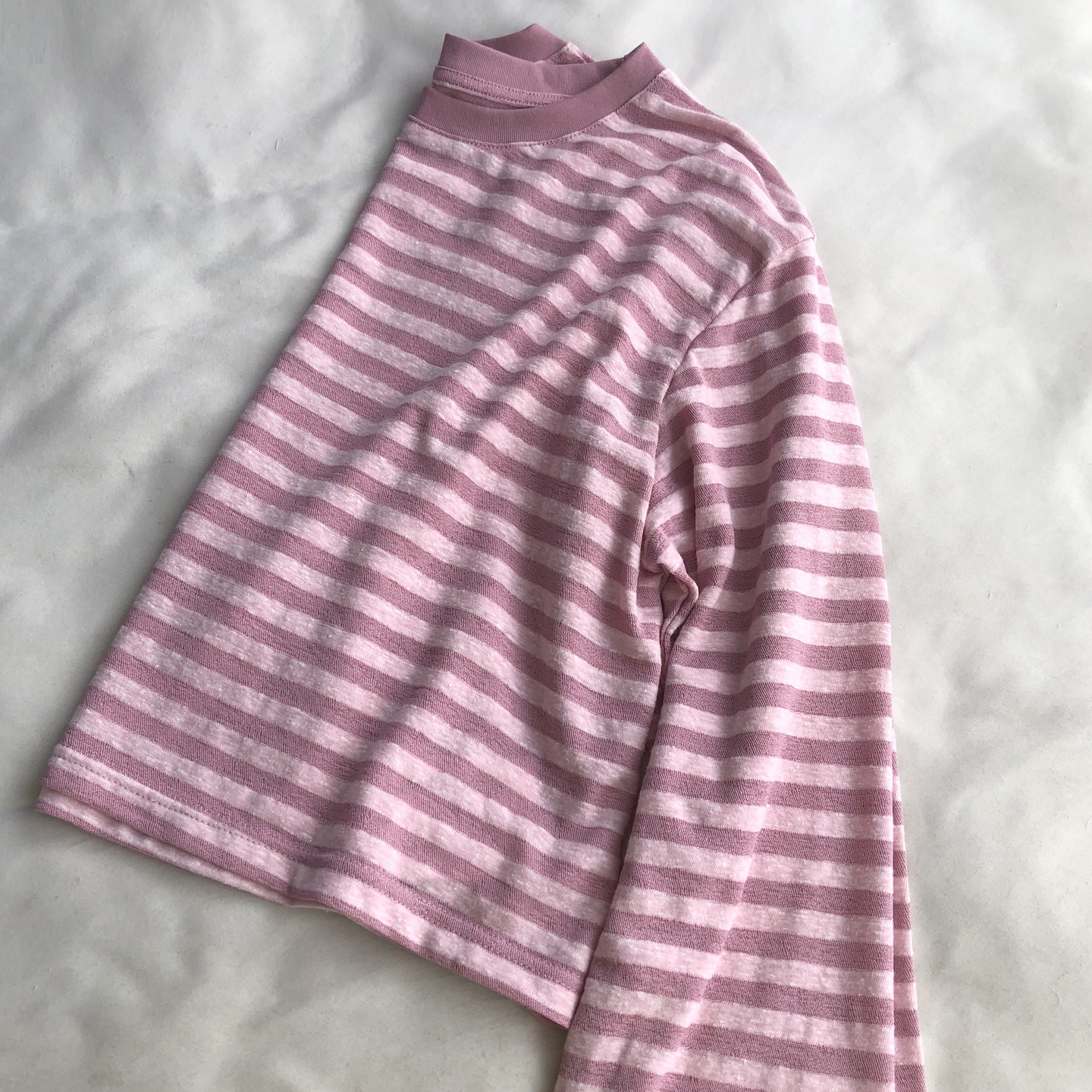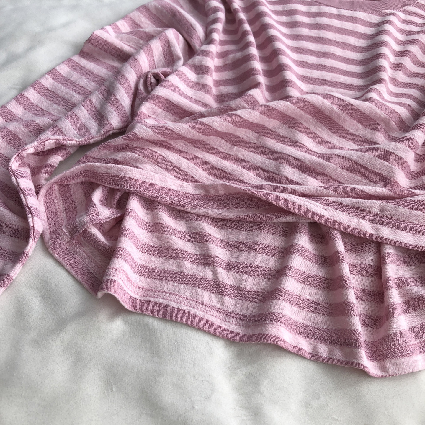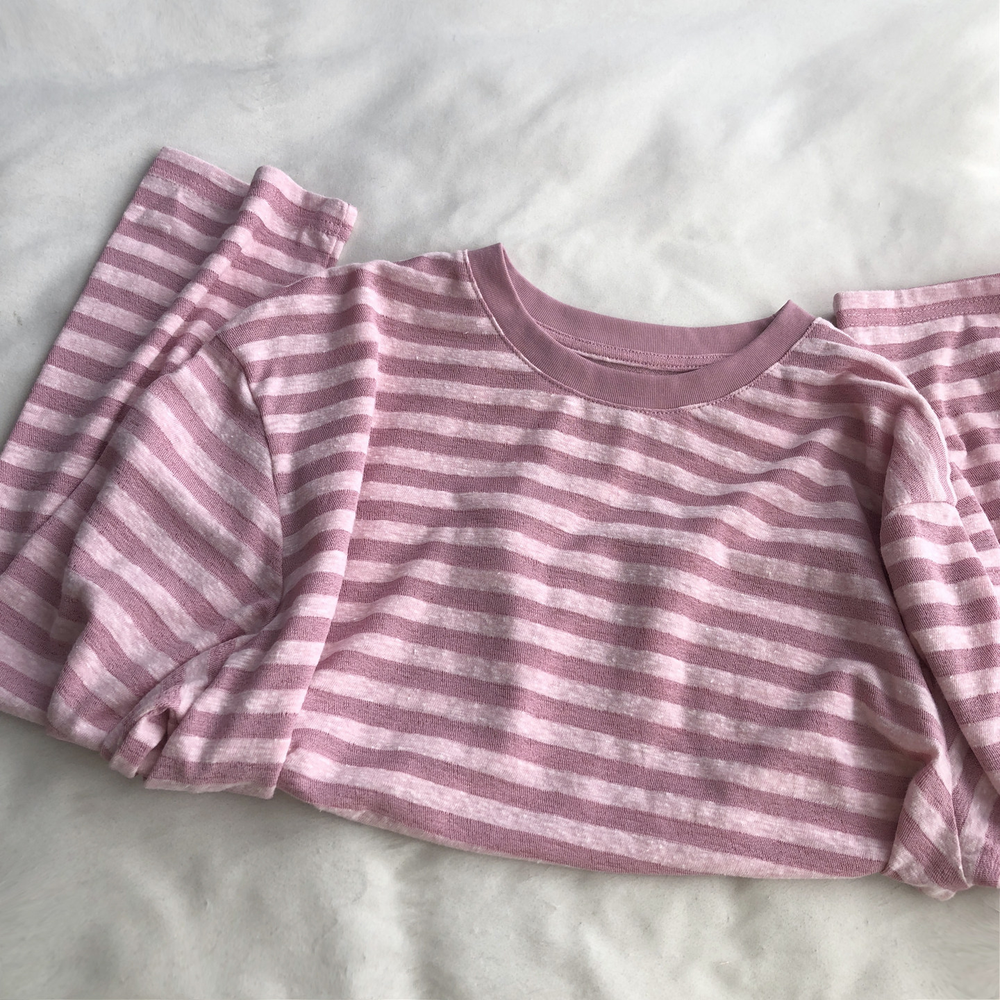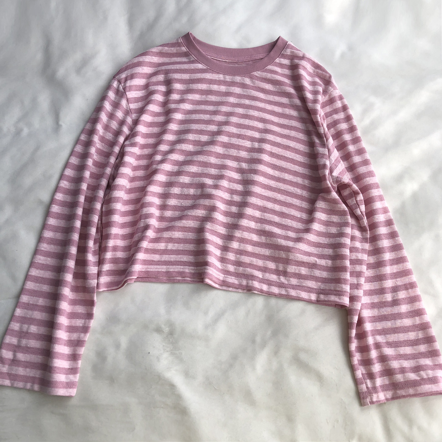 粉色条纹竹节棉T恤女小个子减龄百搭长袖防晒罩衫短款休闲上衣
