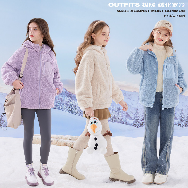 迪士尼女童外套秋冬2025新款儿童毛毛衣加绒加厚大童保暖上衣童装