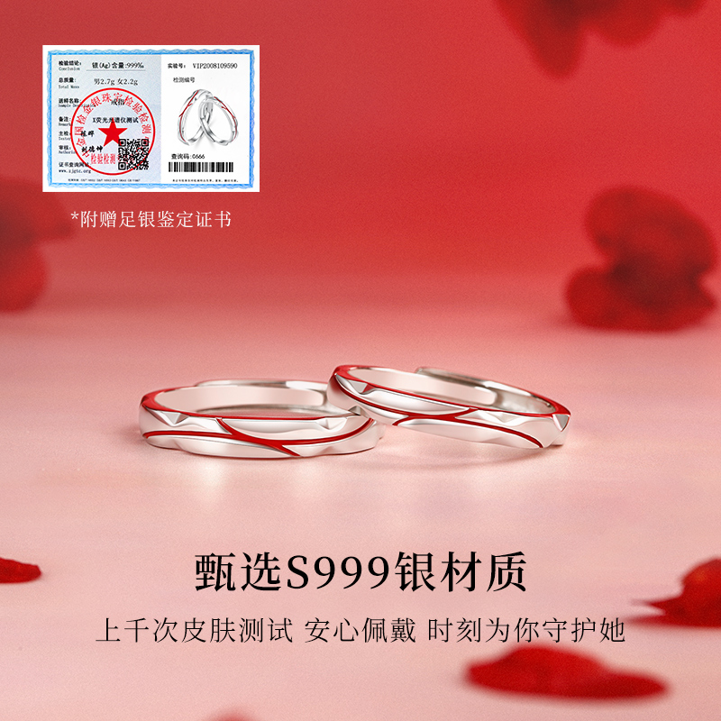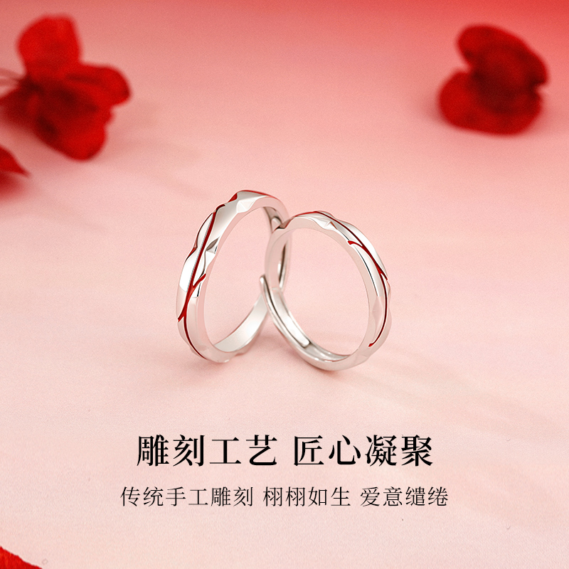 999纯银红线情侣款戒指女男一对小众设计求婚对戒生日送女友礼物
