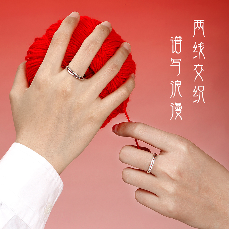 999纯银红线情侣款戒指求婚对戒
