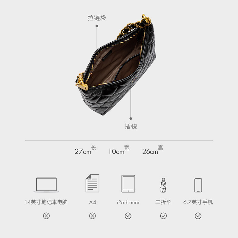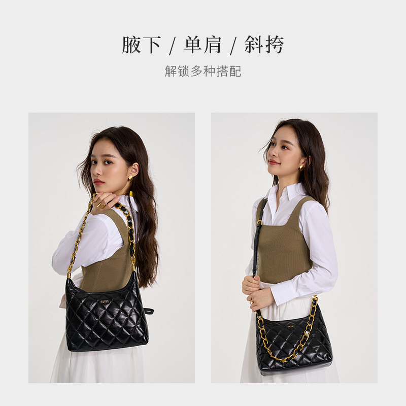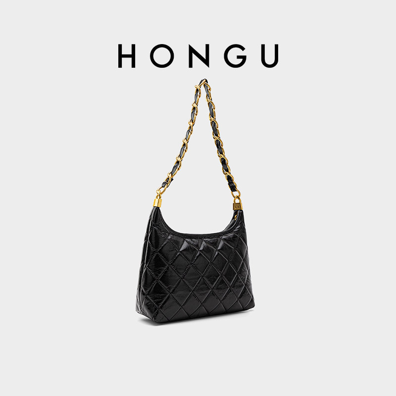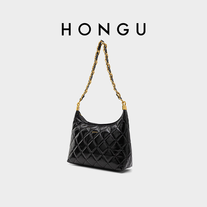 HONGU/红谷秋冬新款菱格链条包女百搭大容量上班通勤托特包单肩包