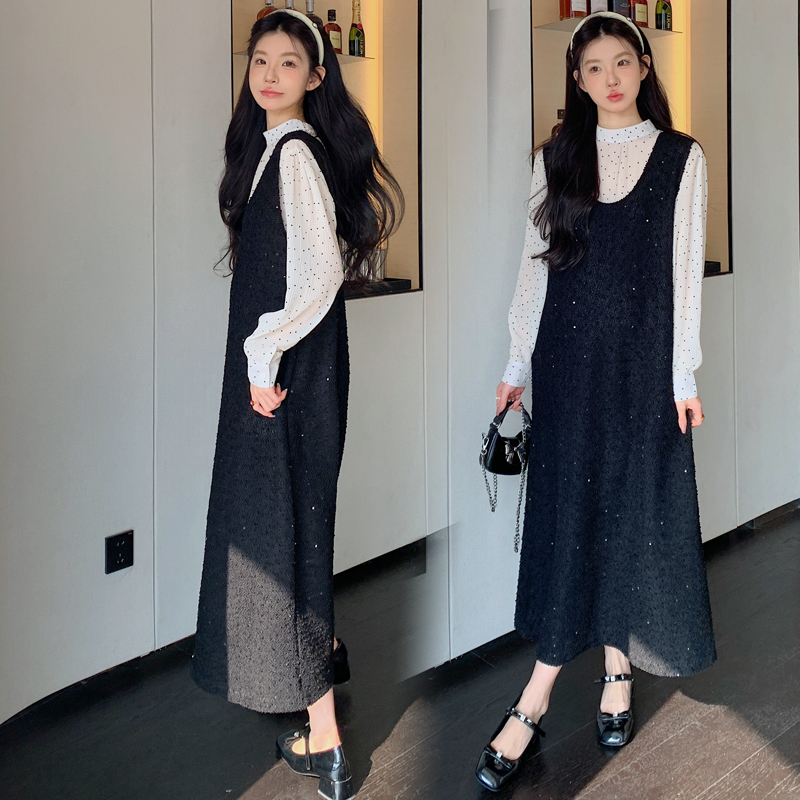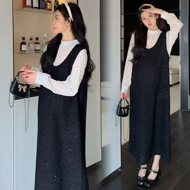 婧麒孕妇装连衣裙秋冬2025新款孕妈亮片套装裙高级穿搭气质宽松裙