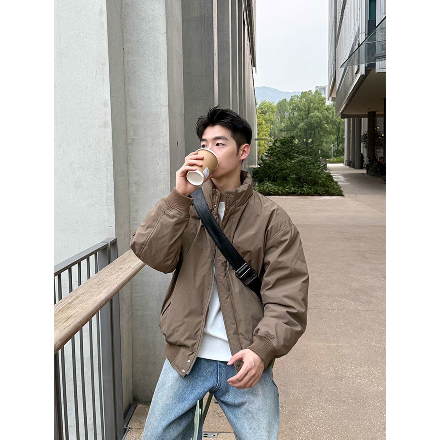 纯色简约立领白鸭绒羽绒服男冬季
