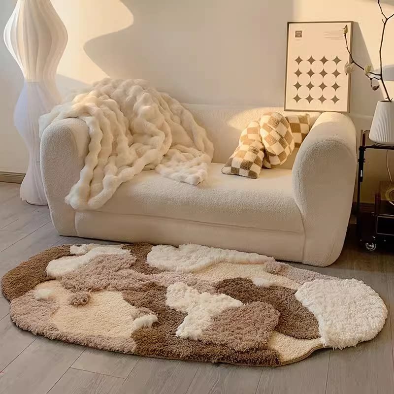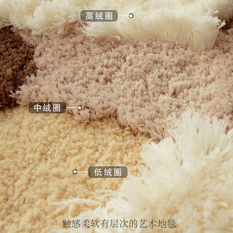 DDD美拉德棕色卧室簇绒床边毯客厅沙发植绒沙漠地毯苔藓长地垫ins