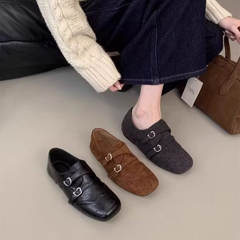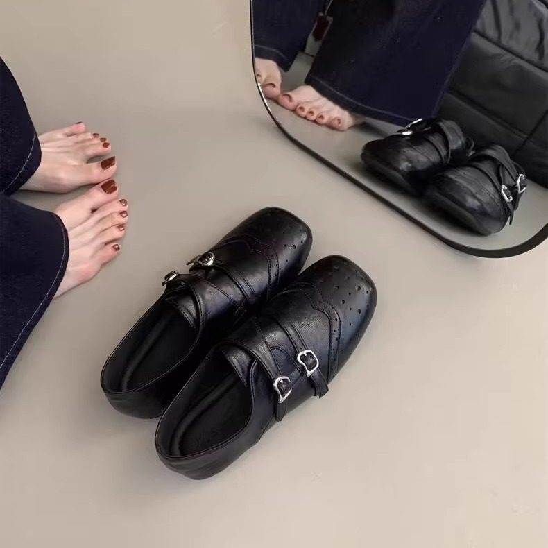 复古英伦风双排扣雕花方头2025秋冬玛丽珍小皮鞋内增高百搭单鞋女