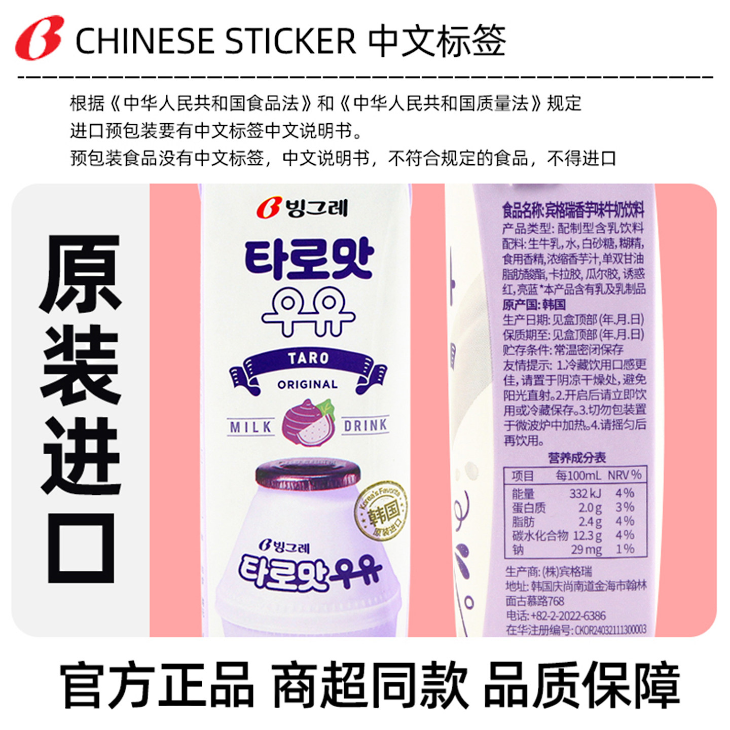 韩国宾格瑞牛奶200ml*24盒整箱装