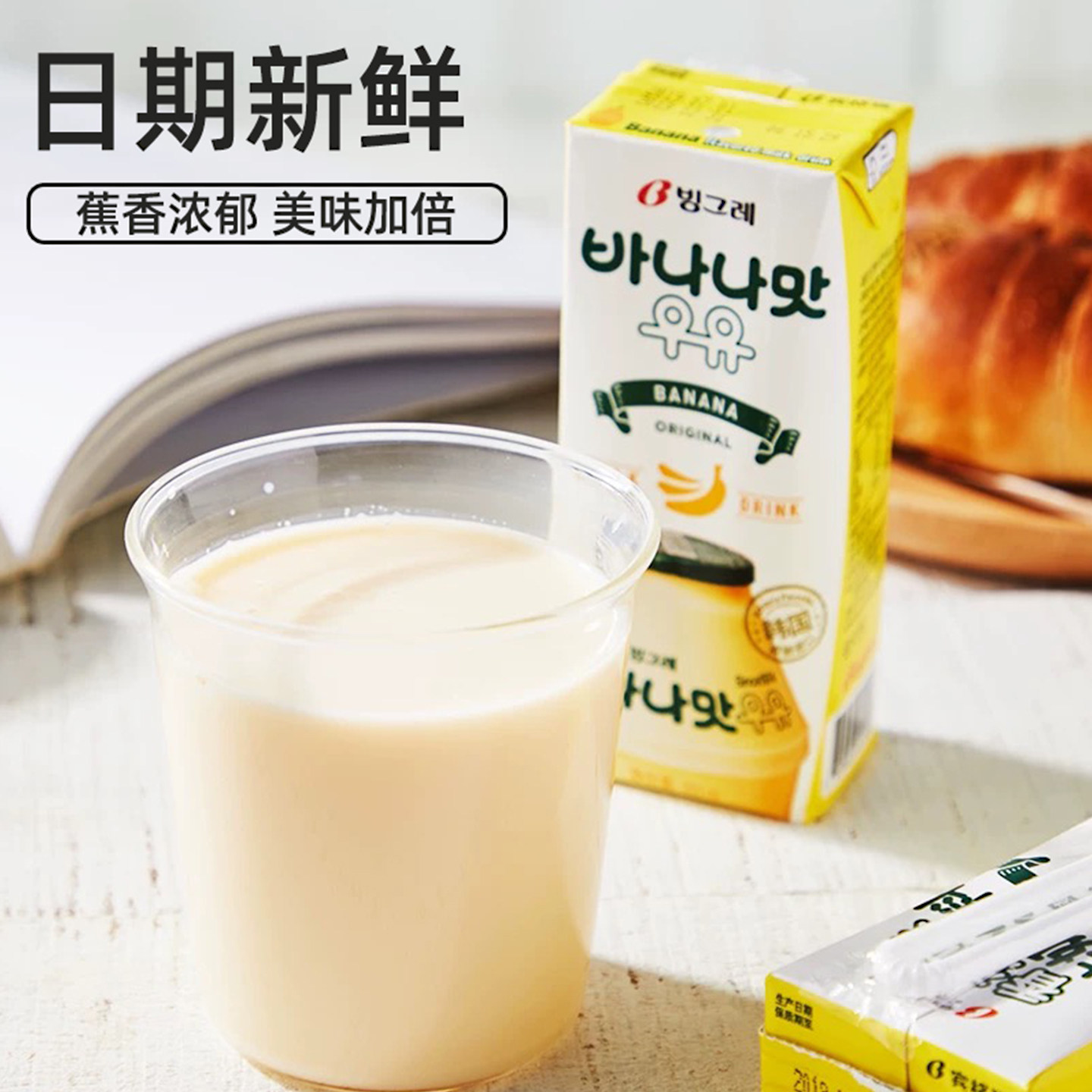 韩国进口宾格瑞牛奶200ml盒装整箱香蕉草莓汁饮料早餐奶官方正品
