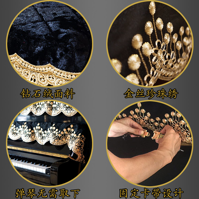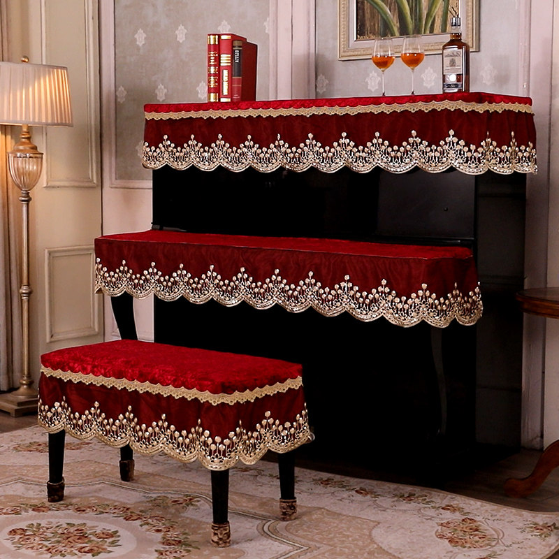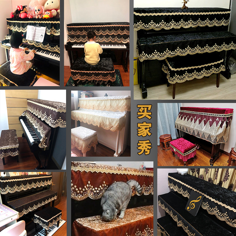 北欧美立式高档钢琴防尘保护三件全套半罩盖布现代简约蕾丝雅马哈