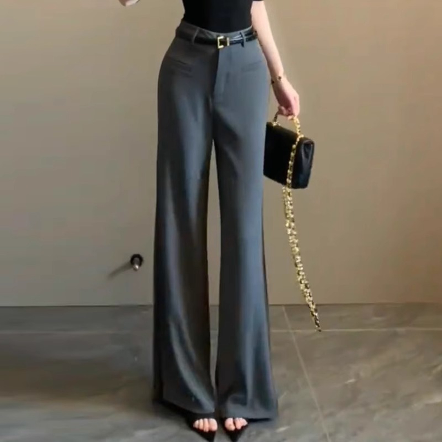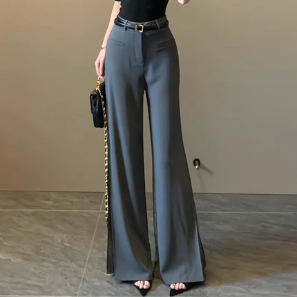 灰色西装裤女2025新款高级感垂感时尚气质窄版直筒阔腿喇叭裤子秋