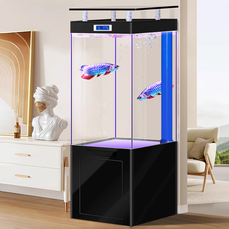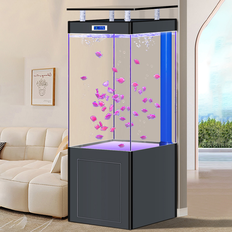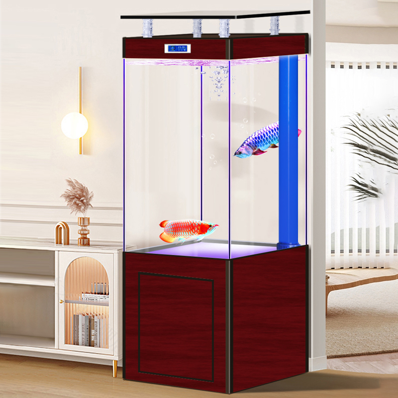 鱼缸客厅中小型底滤超白玻璃家用隔断生态龙鱼缸落地免换水水族箱
