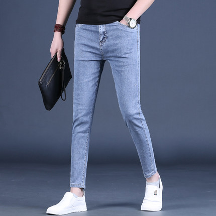 浅蓝色牛仔裤男士九分裤潮流薄弹力修身小脚9分休闲裤25夏季新款