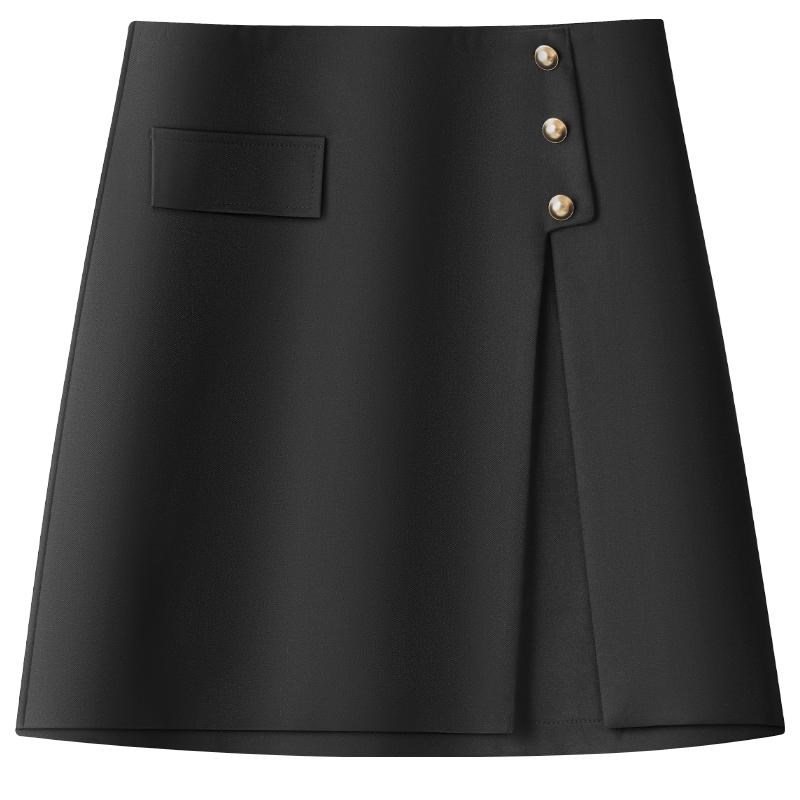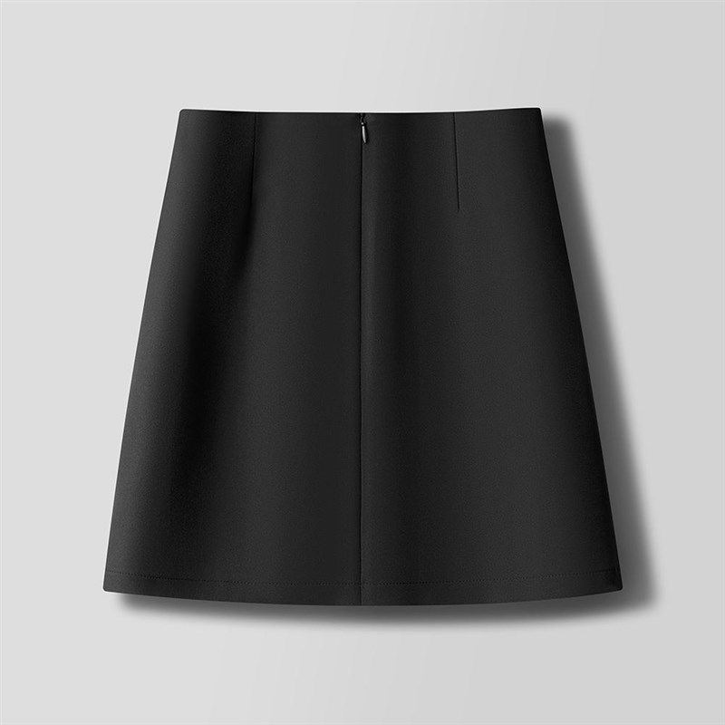 设计感前开叉黑色西装裙女春季半身裙2025年新款高腰包臀A字短裙