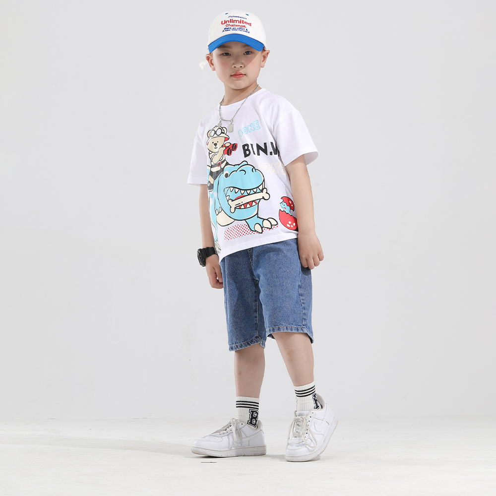 童装优质男童夏季宽松短袖2025新款卡通印花T恤百搭全棉韩版半袖