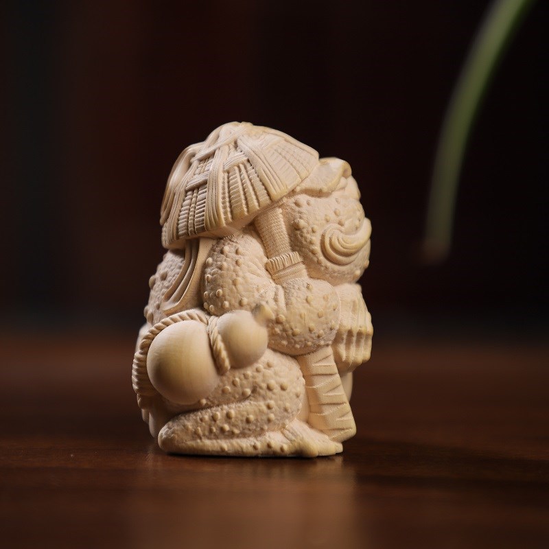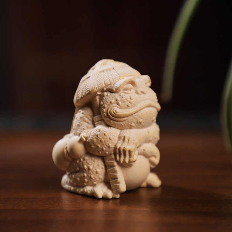 黄杨木蛤蟆大侠客手把件金蟾剑客木雕手玩把件文玩家居小摆件挂件