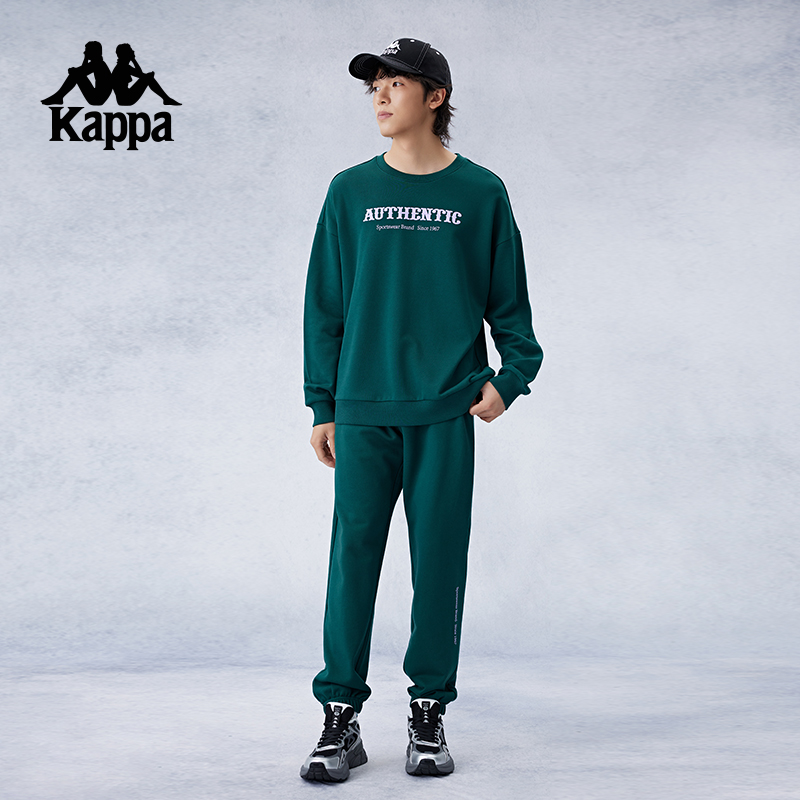 Kappa卡帕背靠背春秋圆领长袖卫衣小脚卫裤女针织跑步运动套装男