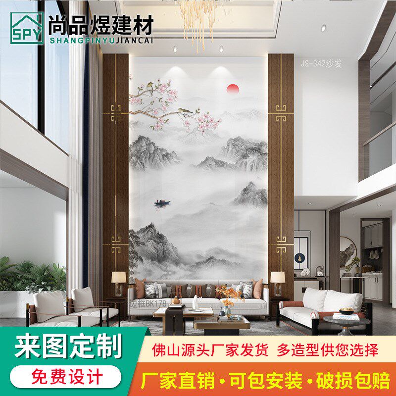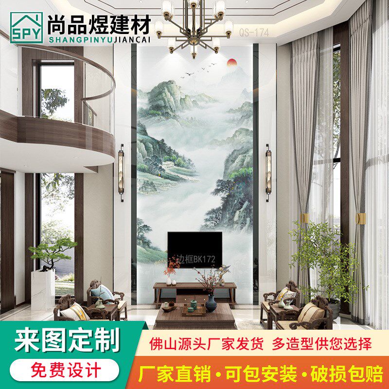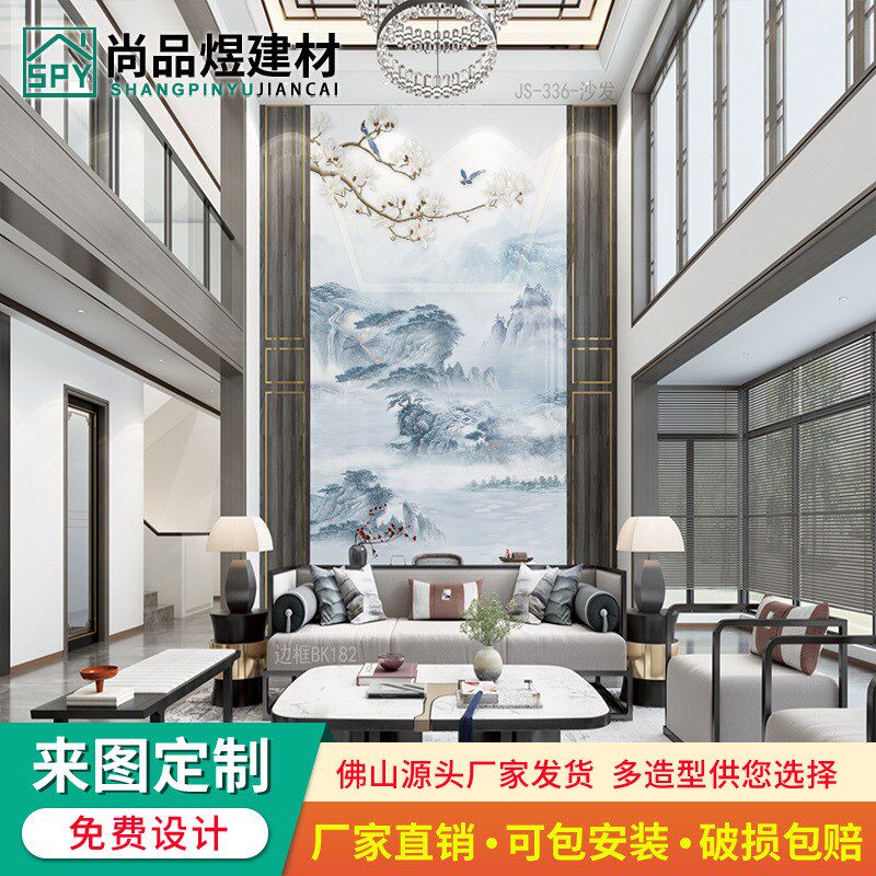速发复式楼微晶视电石背景墙瓷砖客厅别墅挑空岩板影视墙大理石柱