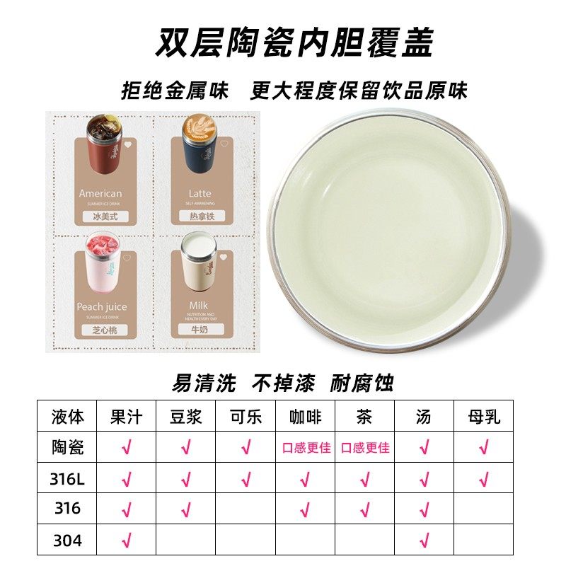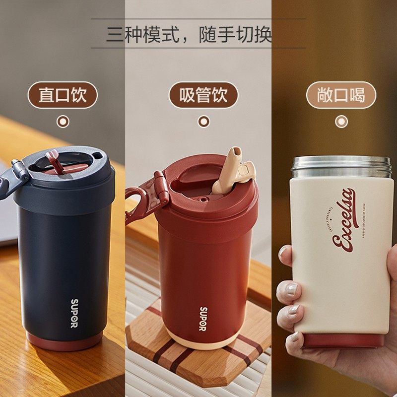 苏泊尔保温杯不锈钢咖啡杯随行陶瓷水杯吸管杯子高颜值车载礼物