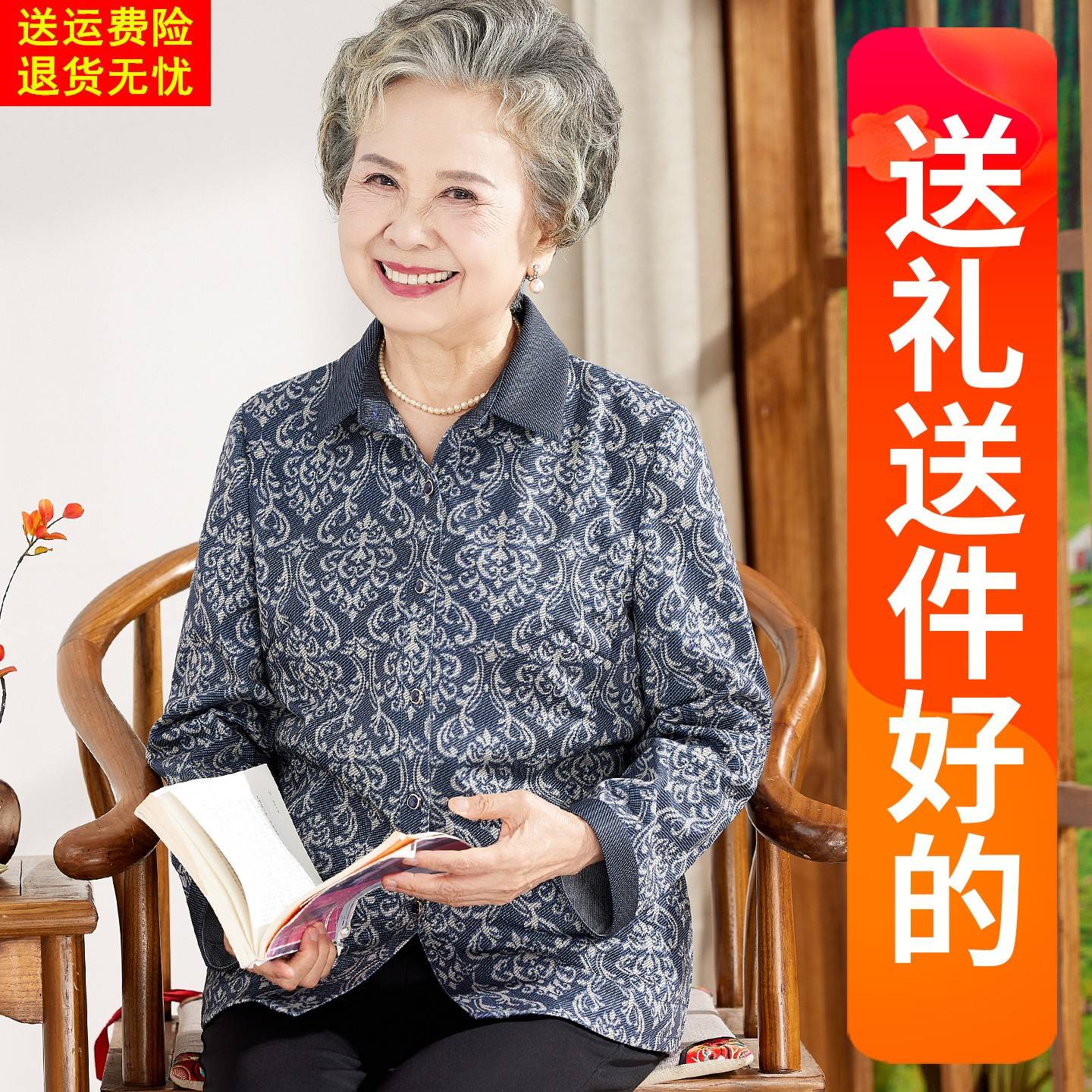 奶奶秋季衬衫中老年人上衣女妈妈洋气衬衣宽松老人春秋款长袖外套