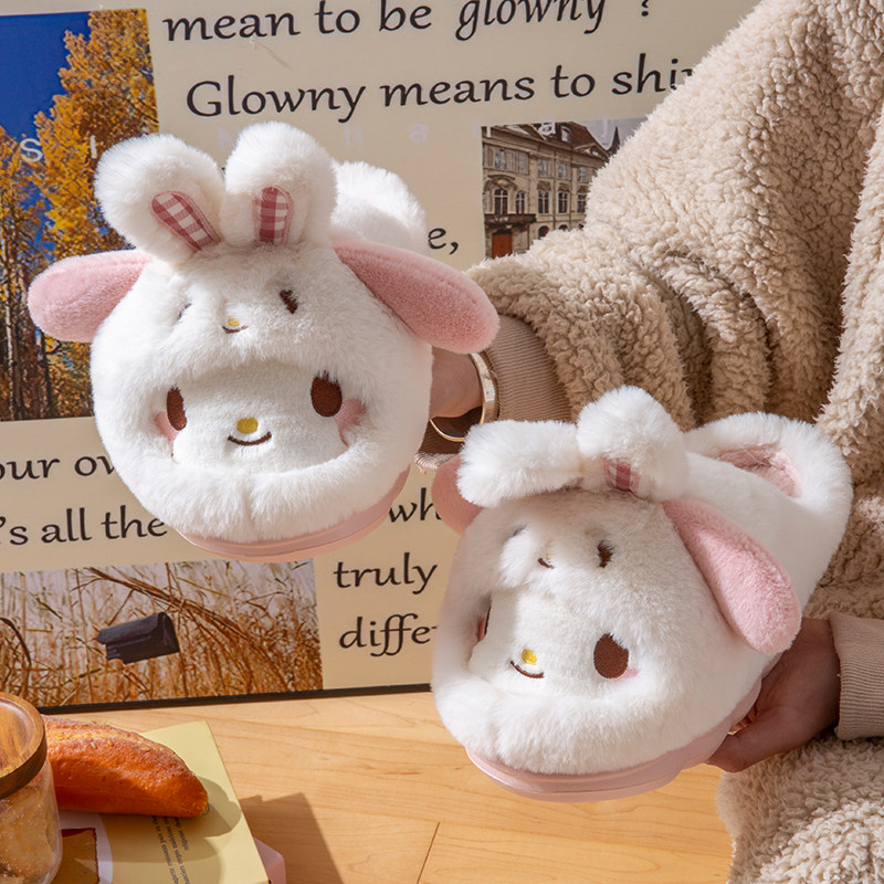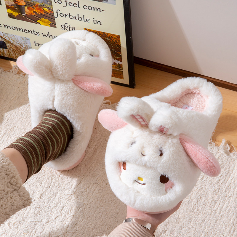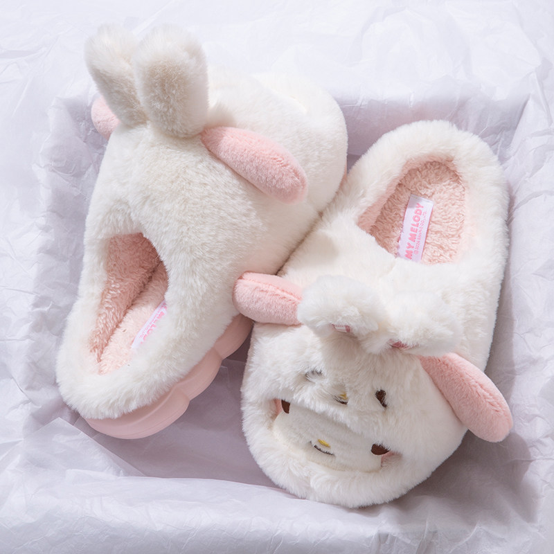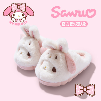 卡通美乐蒂棉拖鞋女士冬季居家室内可爱少女厚底加绒保暖毛毛拖鞋