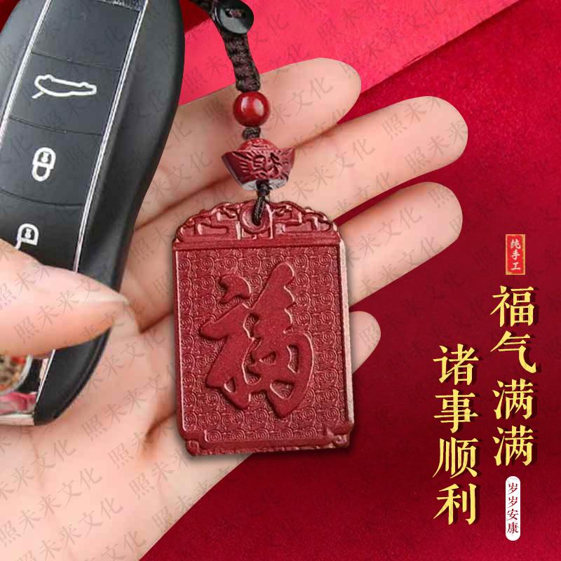 【老师推荐】蛇年精品红沙无事如意福牌钥匙扣元宝福牌女汽车挂件