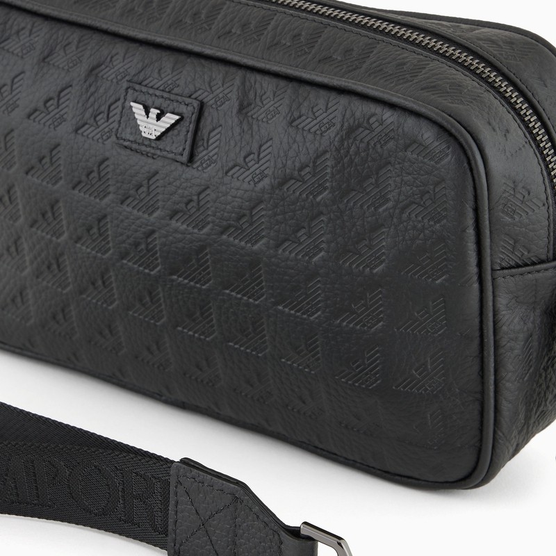 阿玛尼男士犊牛皮革配腕带手拿包