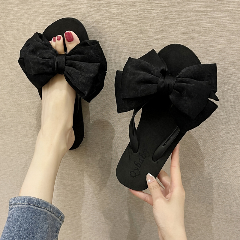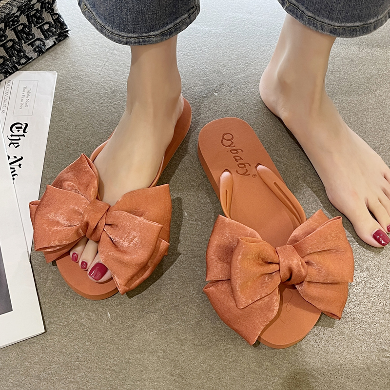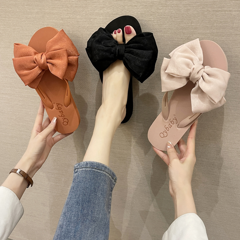 2025夏季新款外出百搭平底蝴蝶结人字拖鞋女时尚外穿夹脚沙滩凉鞋