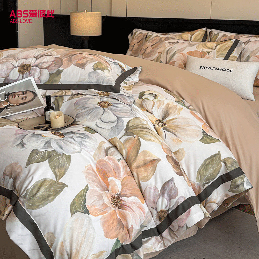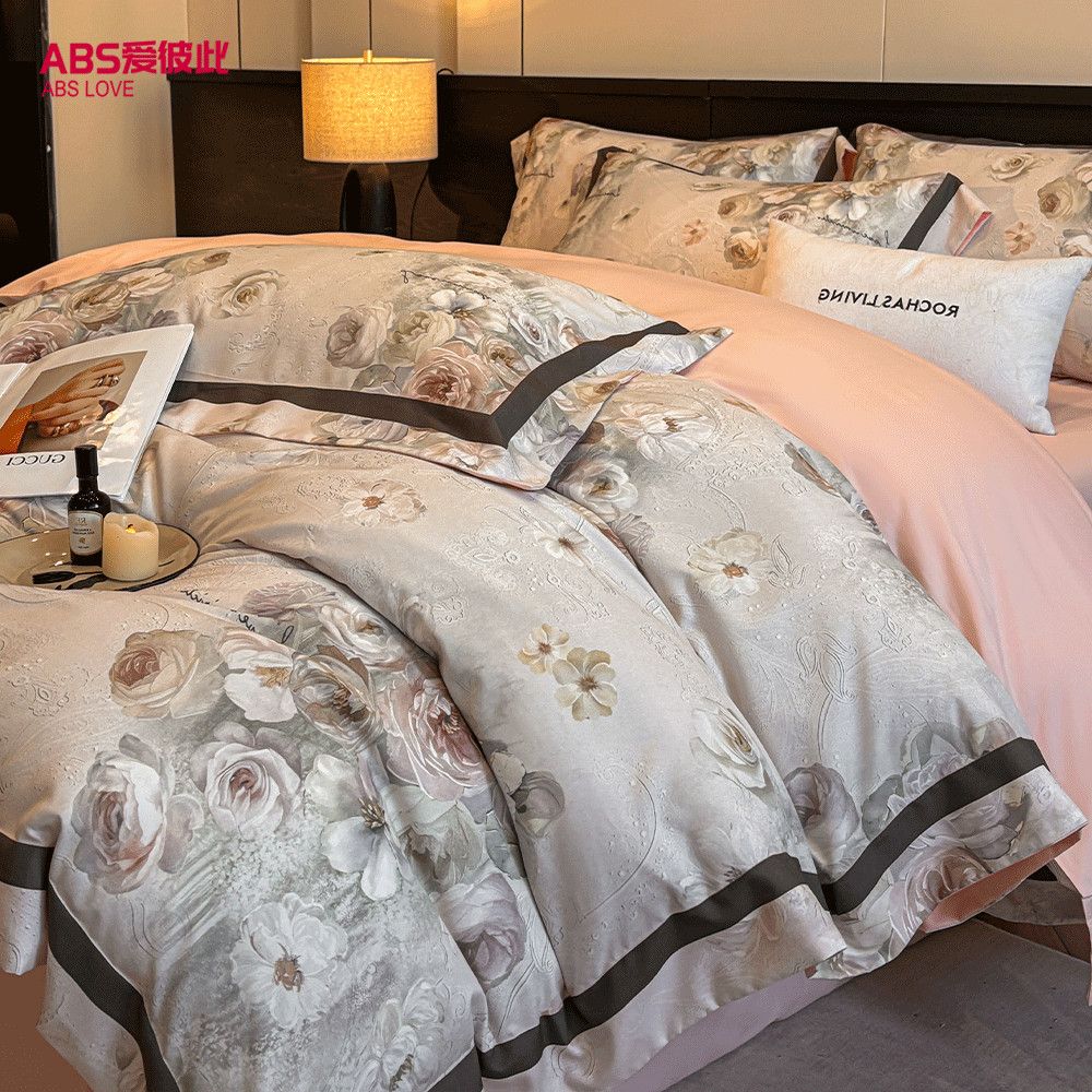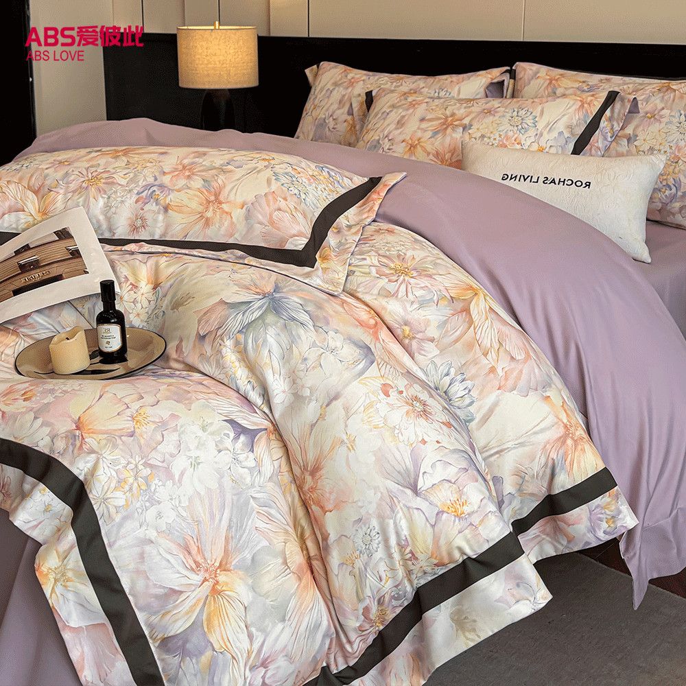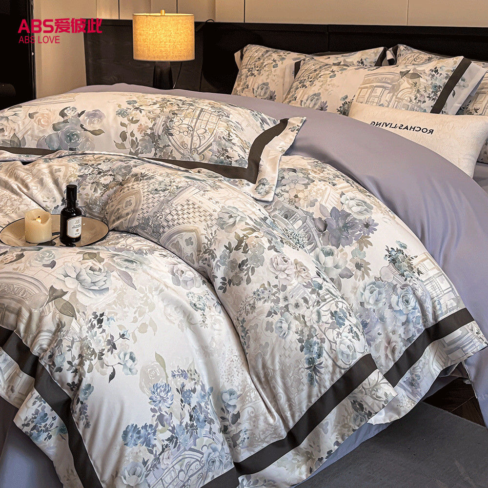 ABS爱彼此轻奢水洗高级感床上用品四件套印花被套床单四季通用