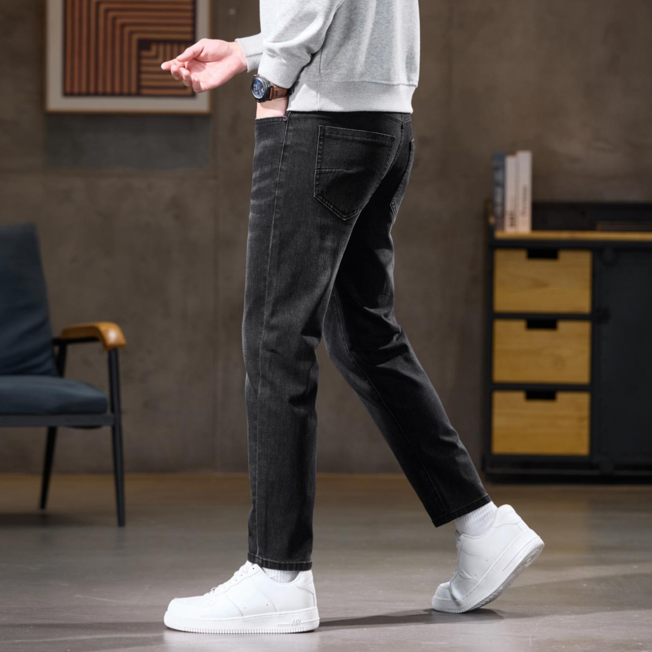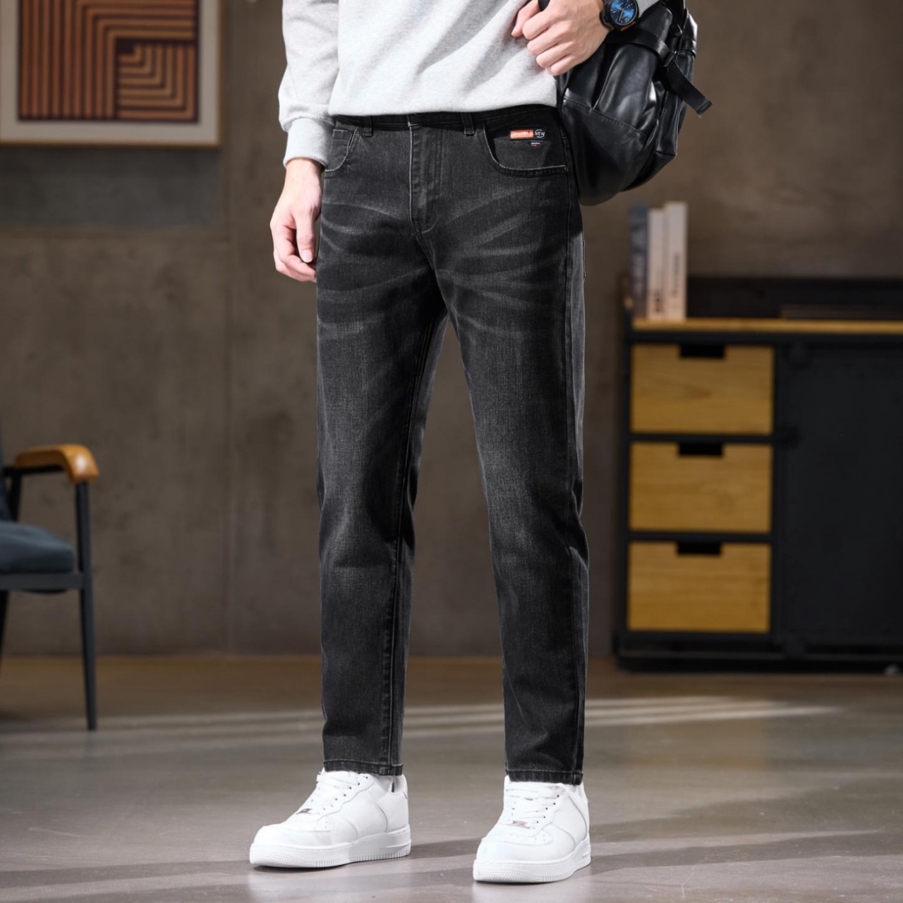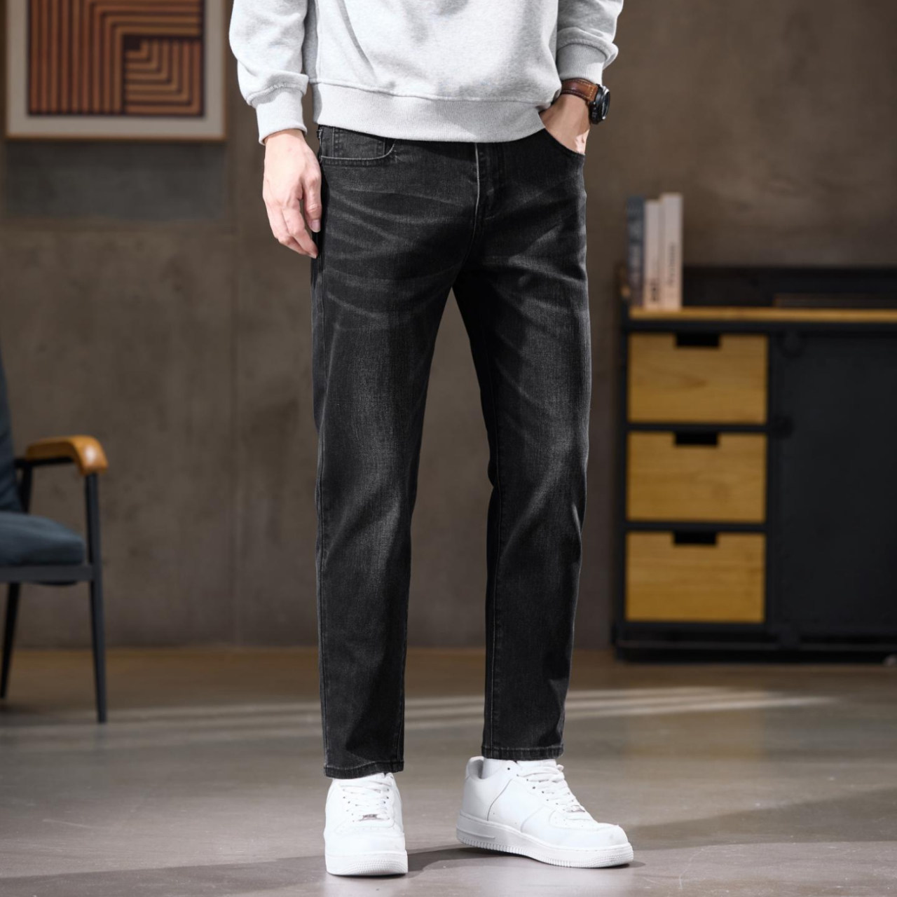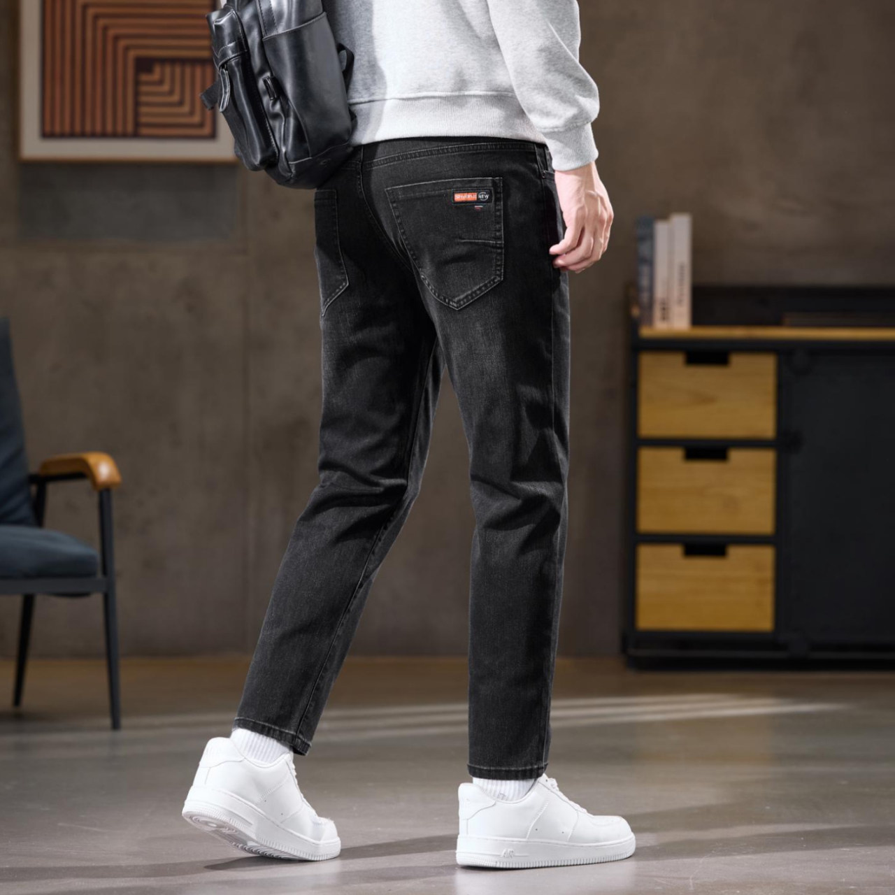 小脚九分牛仔男秋冬季新款潮牌黑色高端皮带款潮流弹力修身男裤子