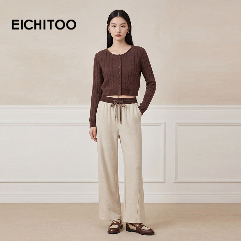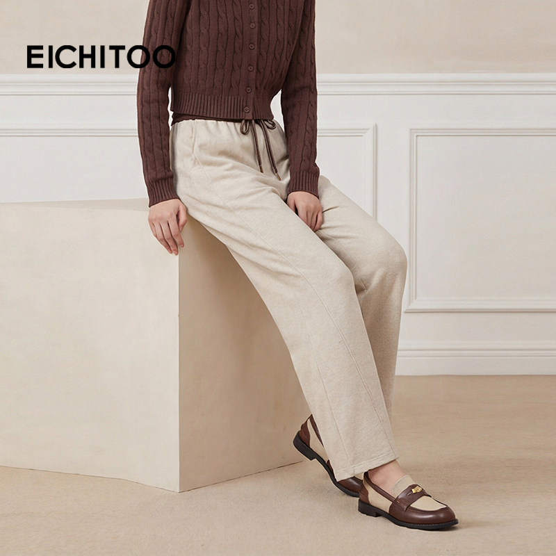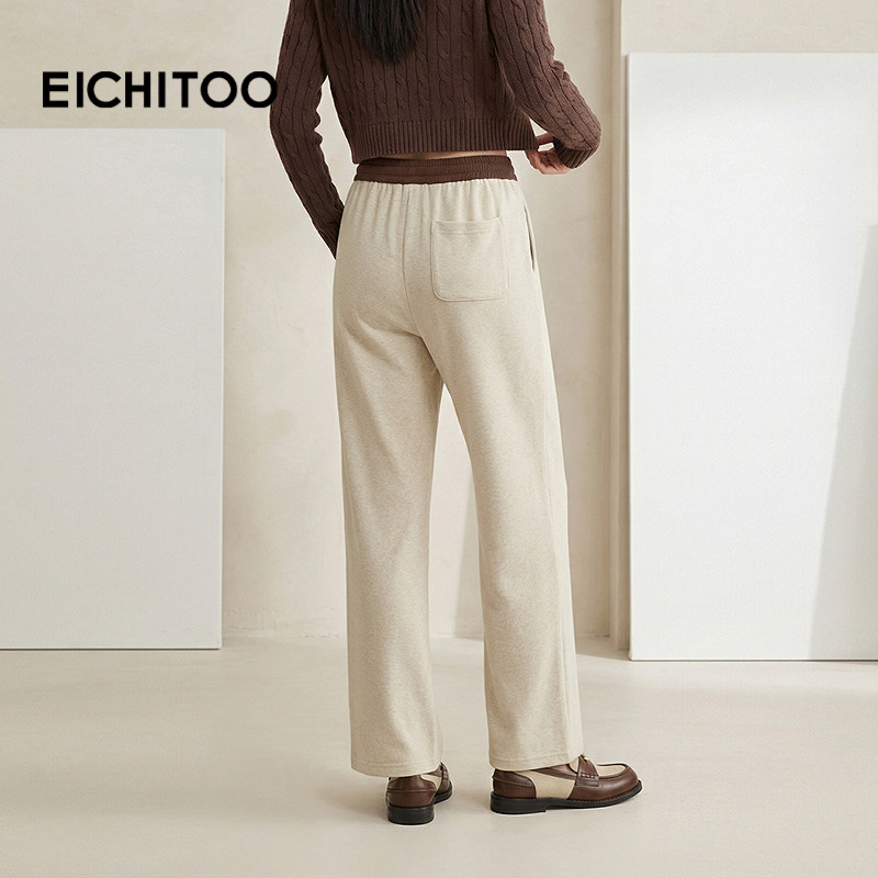 爱居兔撞色哈伦裤女秋季新款软糯舒适燕麦色休闲裤
