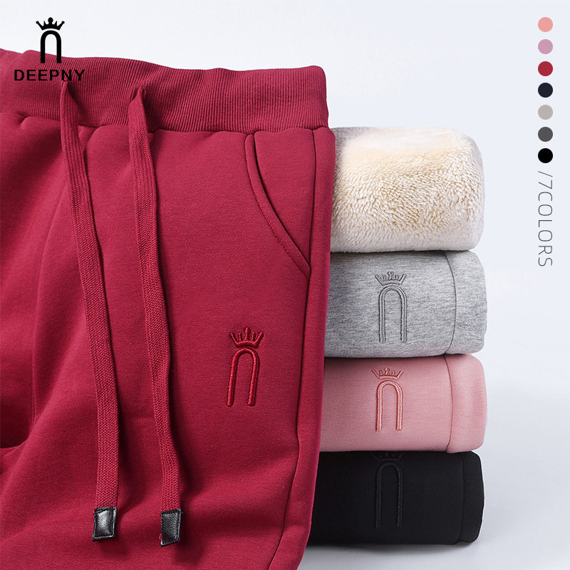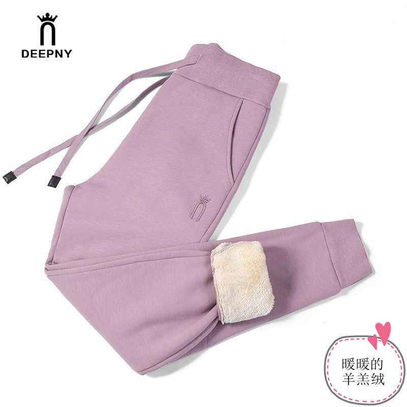 冬季羊羔绒加绒加厚运动裤女高腰宽松束脚休闲卫裤保暖显瘦小脚裤