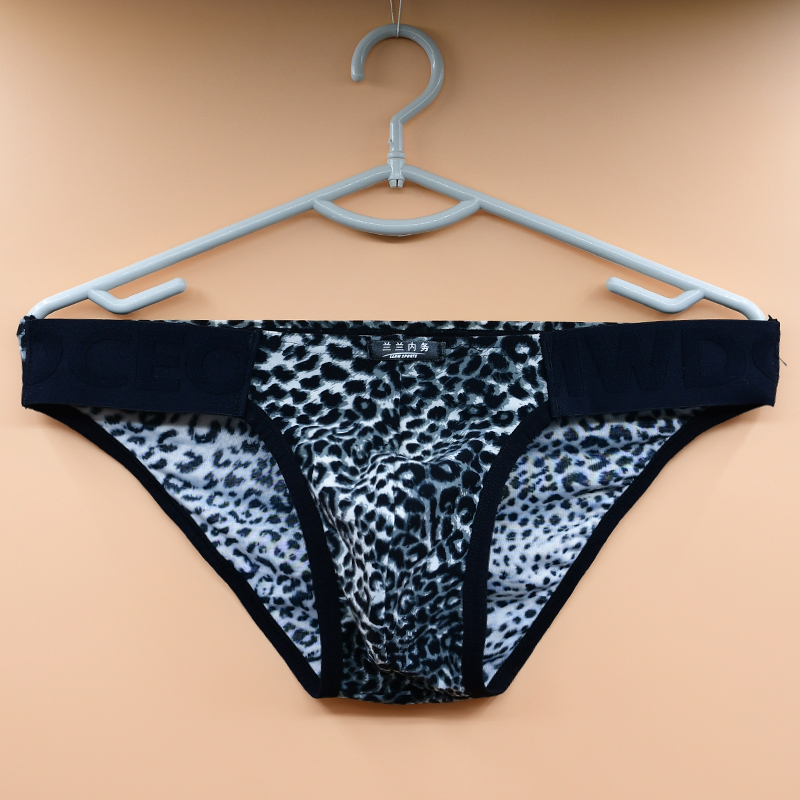 3条男士低腰三角内裤弹力棉豹纹印花个性诱惑性感宽边贴身透气