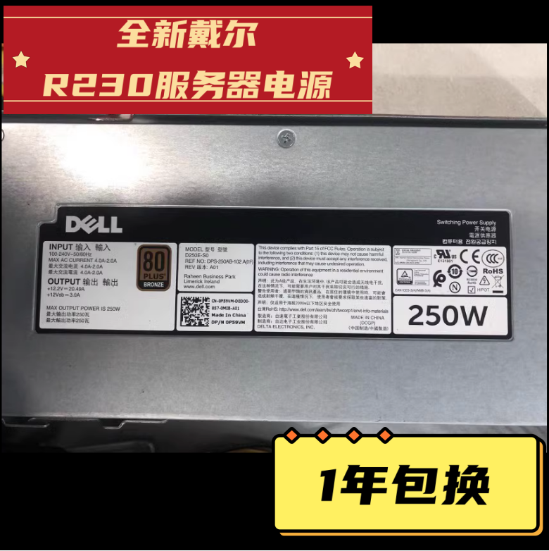 全新戴尔DELL R230 R240服务器电源250W P59VM 9J6JG P3G94 D09YF